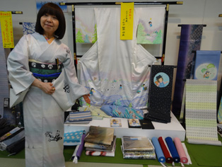 又、毎回、着物の展示会では「まるやま」さんにお声がけ頂き、今回はナント!「一日店長」という形での参加。各フロアを回り、全国からお集りのお客様と沢山のコミュニケーションを!そして、冬の着物と帯も展示して頂きました。 |
