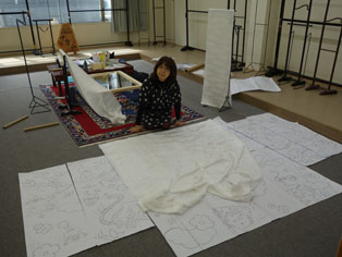 | 今年も春の恒例・着物制作を京都にてしておりました。 毎年、一点ずつ自分で着る着物と帯をデザイン・手描き・染めという工程で頑張って来ましたが今年は...いよいよ孫娘の振袖を制作する事になりました。 振袖は見せどころが多く、普通の着物に比べ10倍位のエネルギーが必要!! |